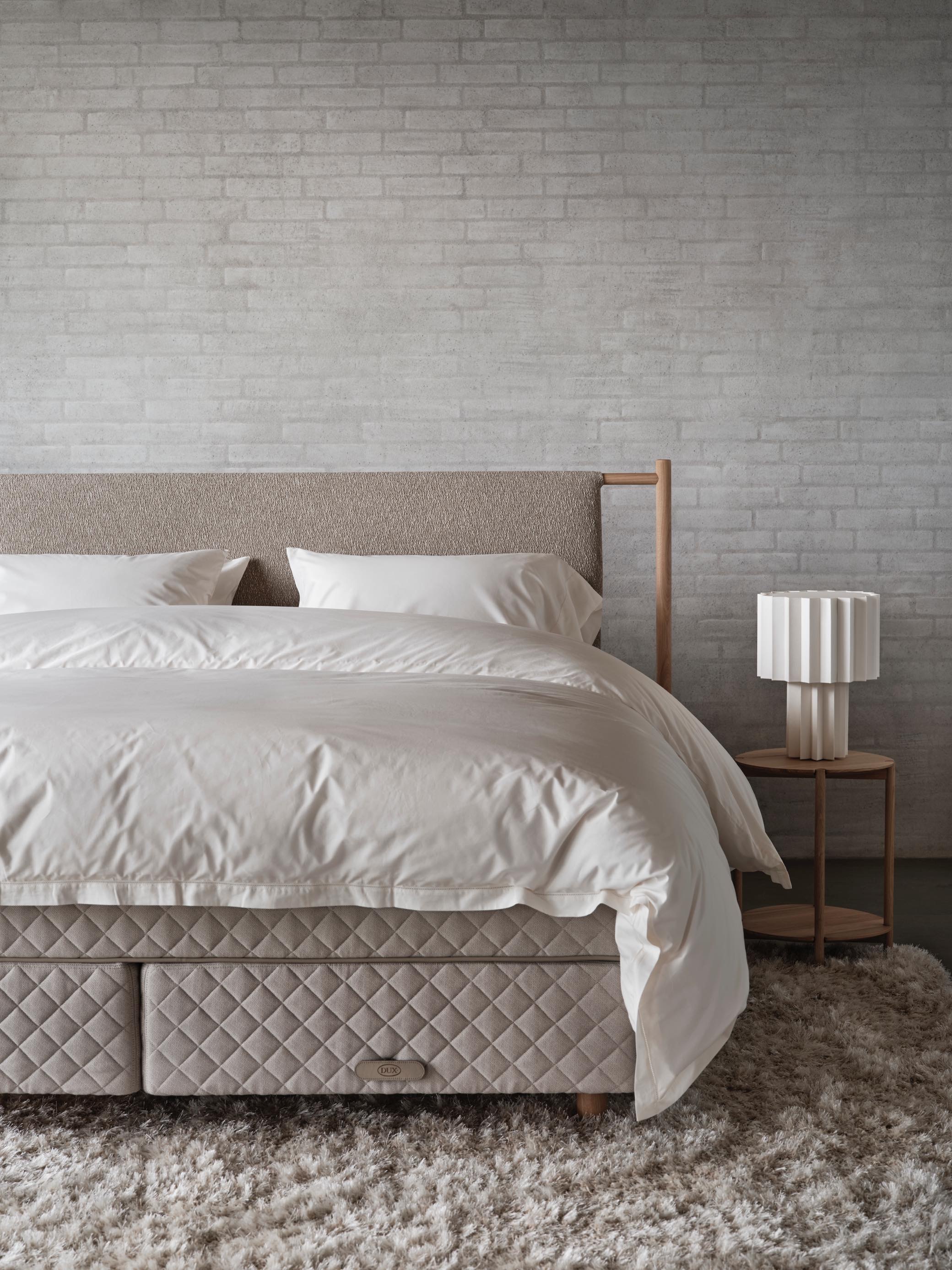 DUX80は、2段マットレスタイプ(スプリングコイル2層、パスカルシステムコイル1層) の DUX BED で、パスカルシステムと、腰部の支えを調整できるランバーサポート(腰椎保護)機能を備えた多機能なモデルです。